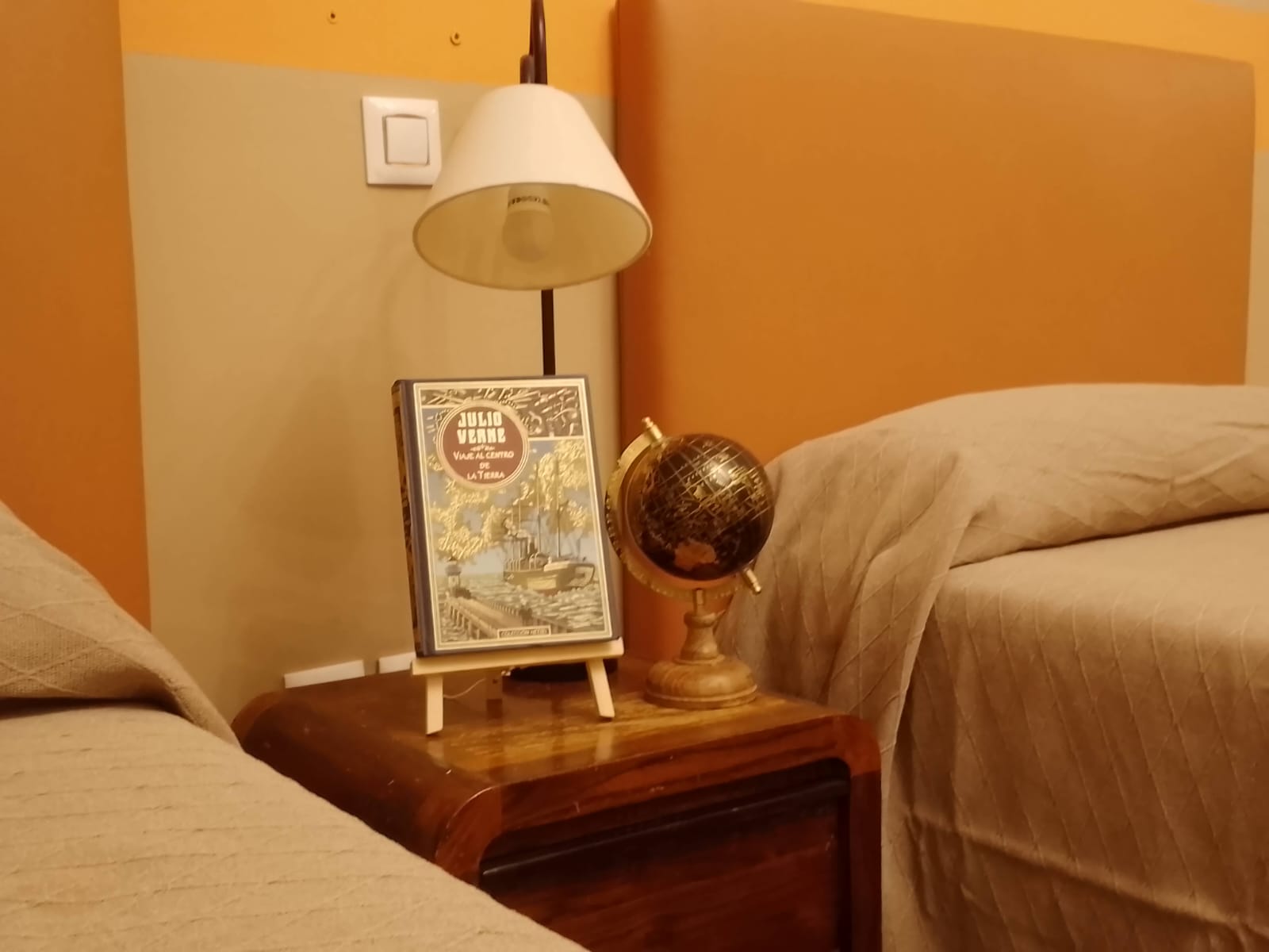 La habitación dispone de dos camas individuales con posibilidad de una cama supletoria, pensada para quienes viajan en familia o en grupo, pero no quieren renunciar al encanto de lo íntimo. Cuenta con balcón, baño completo, aire acondicionado y calefacción, secador de pelo, TV, minibar, caja fuerte y una pequeña biblioteca donde las palabras vuelan entre planetas, volcanes y rosas únicas.